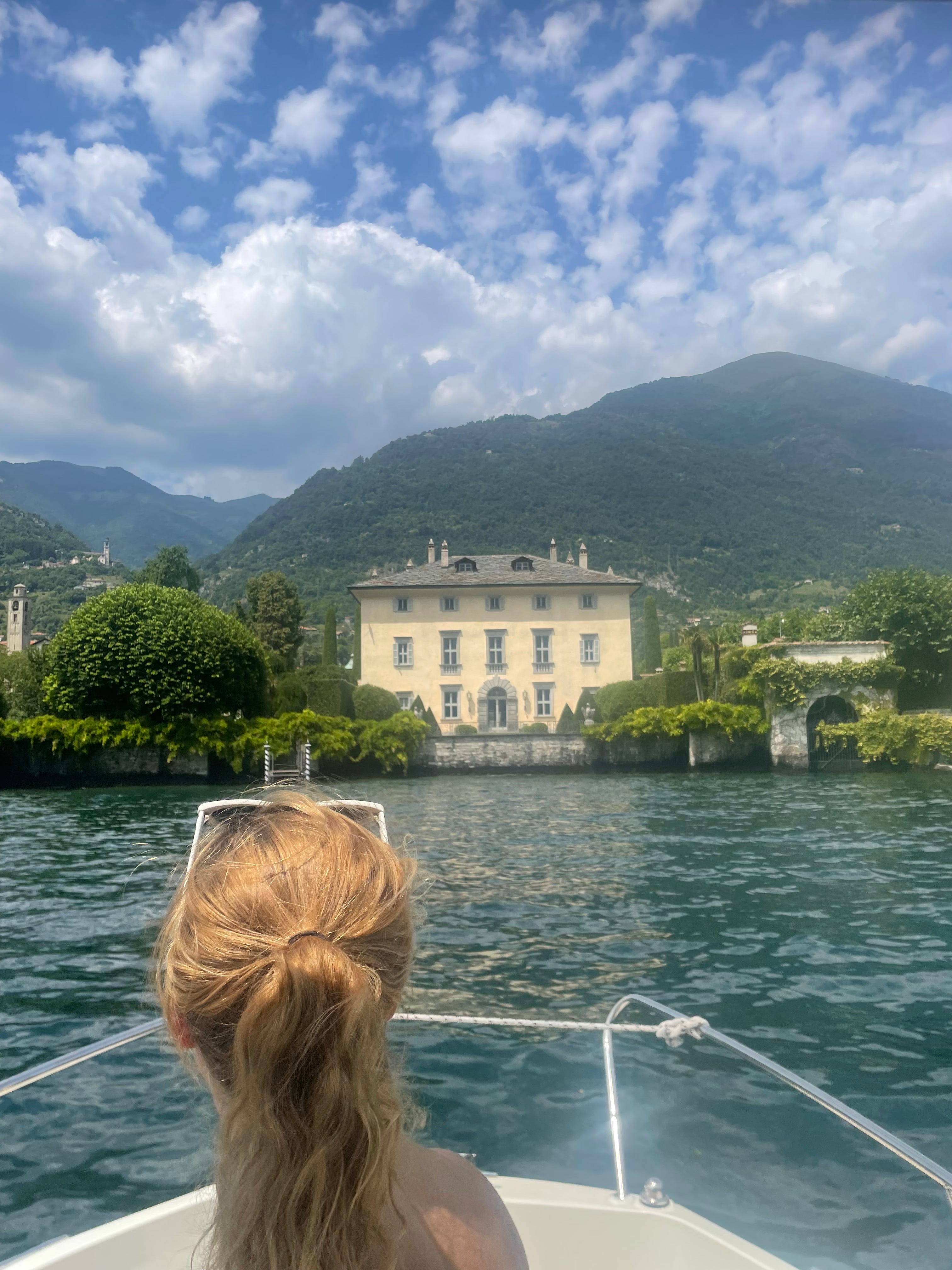 Pillowy domes of brioche at breakfast. Even in northern Italy, they cannot stray too far from the canons of good coffee. A boat picnic of cheese and fruit and prosciutto and wine, a lion-blooded Barolo, those golden bosc pears, and that pistachio crema baked into a hundred layers of pastry. Watching sunbathers in the distance on striped towels, Italian women with their whole bodies sacrificially under the sun, going leather tan in the deeps of a summer day. Everything and everyone in view, more or less, on fire with light. Leap off the side of a boat, arms flung.